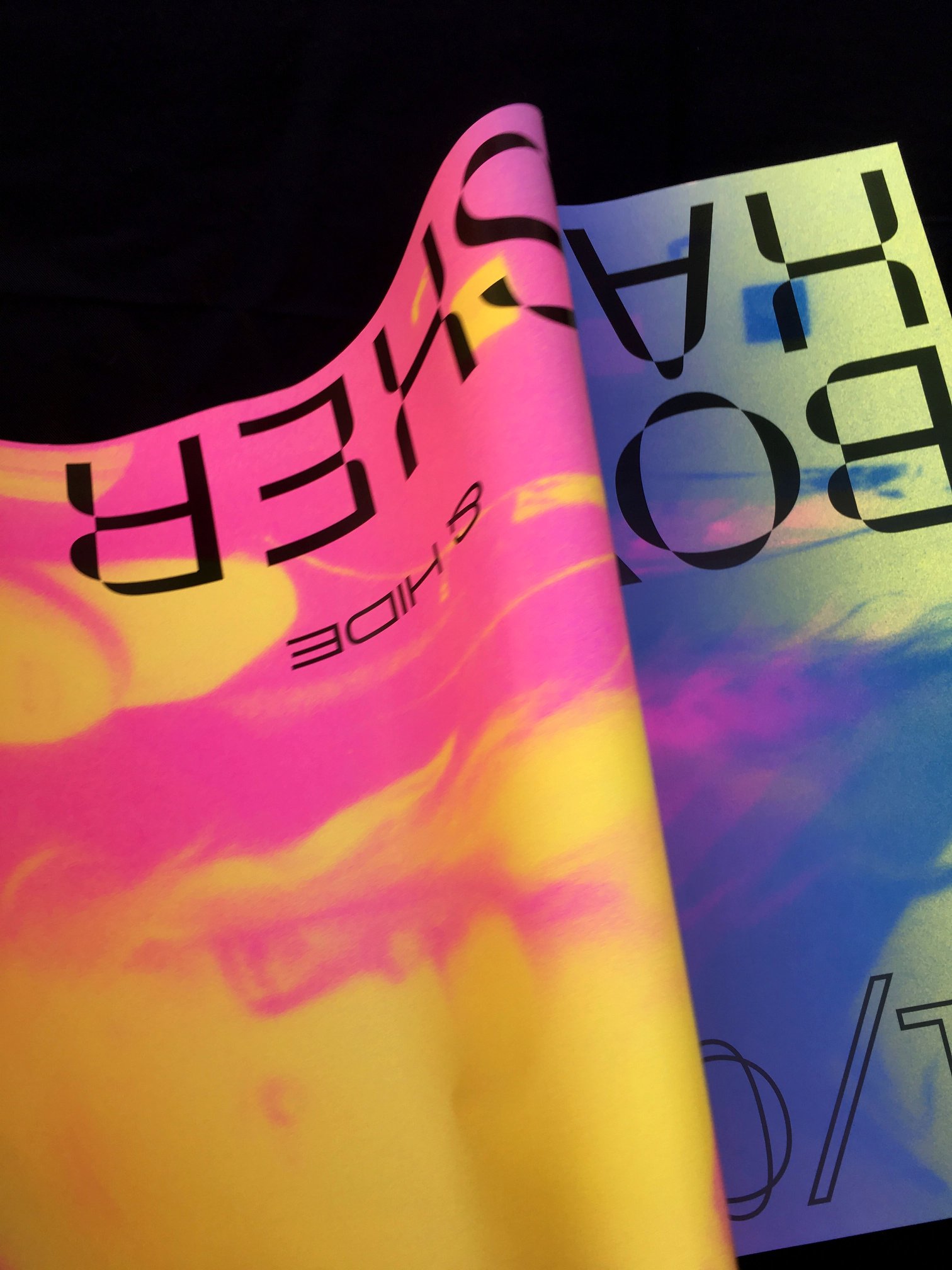 offset print with fluo yellow, fluo pink, cyan + silver, black + silver on 150g paper / 2020