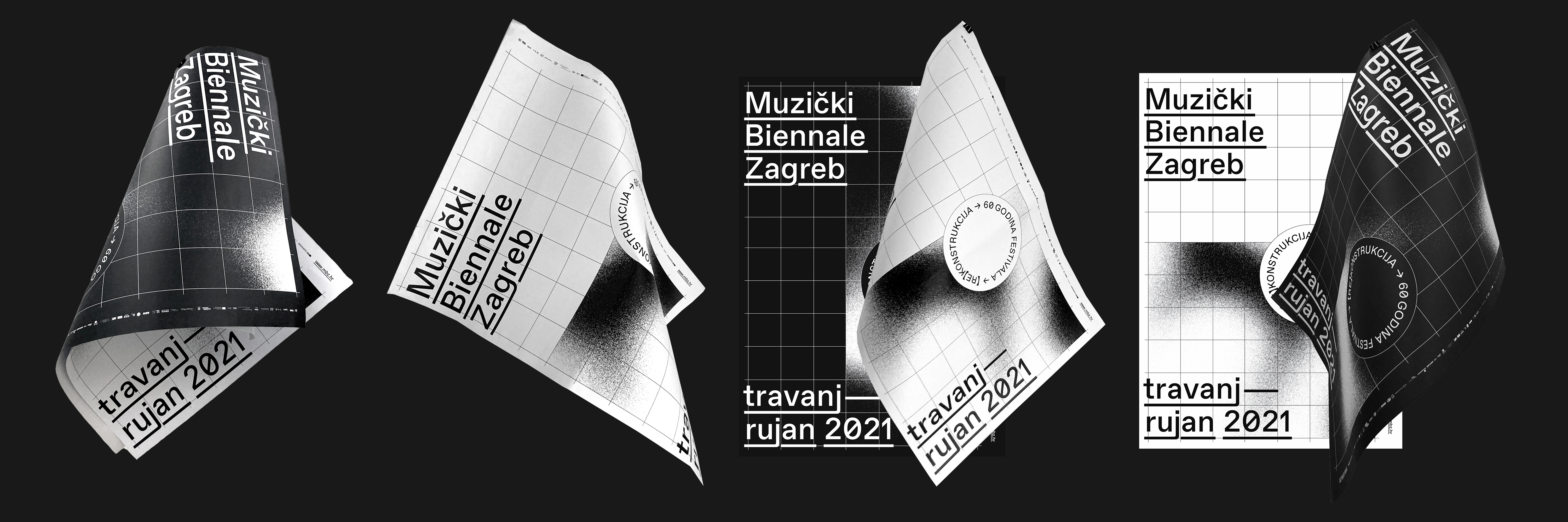 The design we created communicates 20th century heritage and modernity. We use acoustic and electronic sounds for videos. The dynamics of the composition within the network are reminiscent of New Tendencies 2 and 4. The generating of sound for the videos is digital, but the methods are an homage to the experimental composing techniques of the middle of the last century. The permutations of the composition in the print medium are almost infinite, they function like a single "frame" of animation. The "Celebration" rotating wheel is a postmodern element. The typography is contemporary, not even half a decade old.